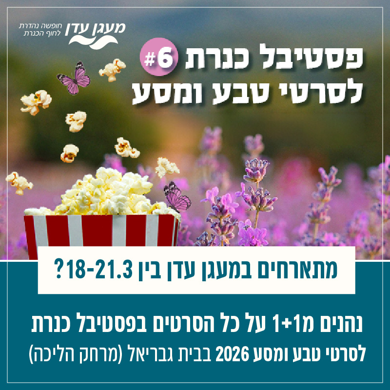 נהנים מ1+1 על כל הסרטים בפסטיבל כנרת לסרטי טבע ומסע 2026 בבית גבריאל (מרחק הליכה)